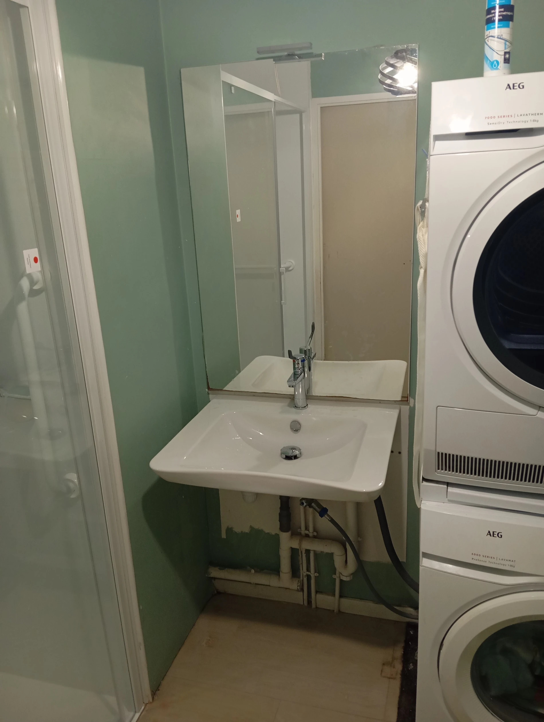 Enfin, le chantier comprenait la dépose d’un meuble lavabo traditionnel remplacé par une vasque PMR suspendue, conçue pour faciliter le passage du fauteuil roulant sous le plan d’eau. Cette configuration améliore considérablement l’autonomie et l’accessibilité au quotidien.